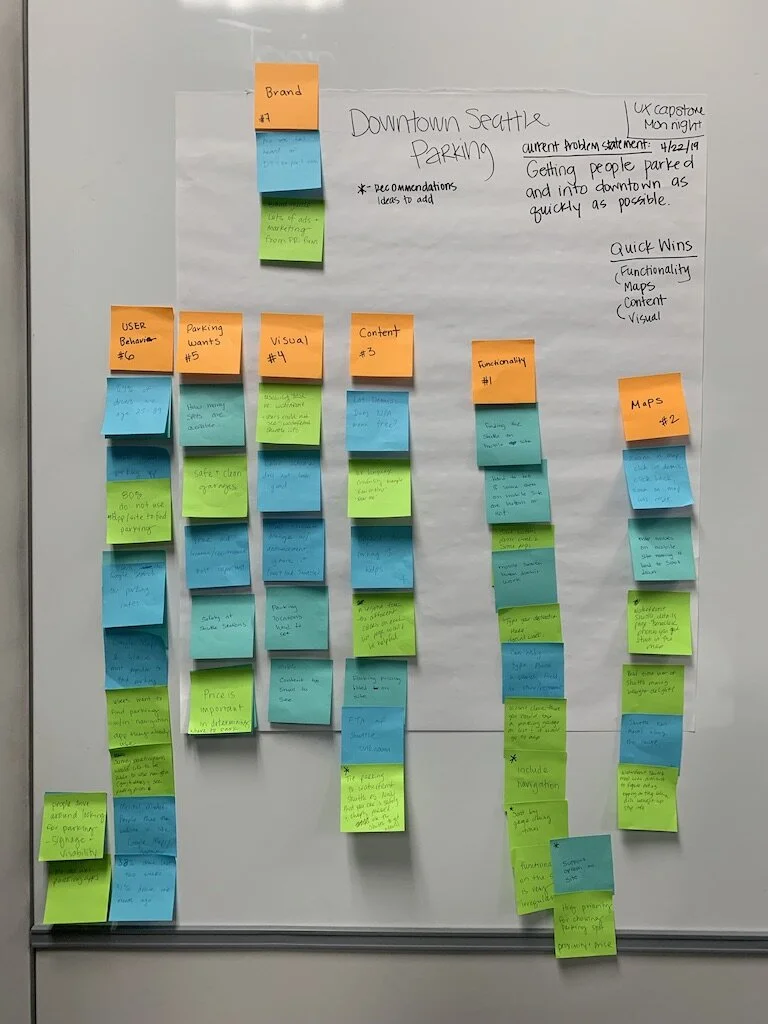 A missed opportunity was testing prototypes with users in real-life situations. 60% of survey participants said they discover parking around their destination, with 37% of those using an app or website to locate parking. While I don’t condone user testing while driving, we could’ve gathered valuable data if parked on the side of the street or a similar situation.