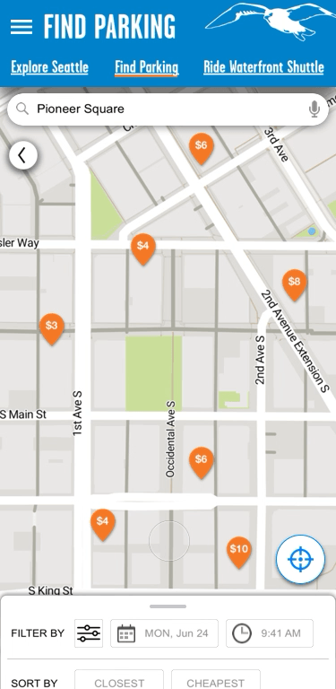 Users can sort their search results by what’s cheapest or closest to their destination. Inputting time and date information return accurate garage pricing data. Narrow your results down even further with Amenities.
